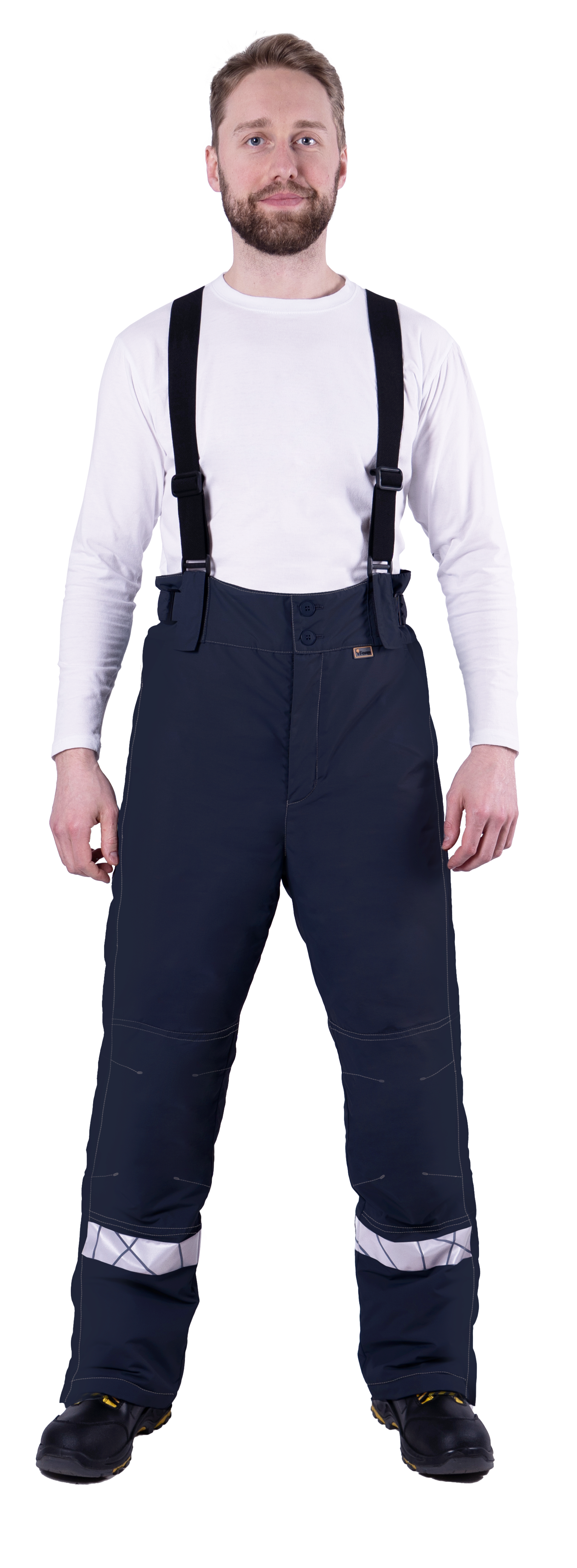 • высокий утеплённый пояс с застёжкой на две пуговицы. Объем пояса регулируется в области боковых швов с помощью хлястиков с застежкой текстильной и держателя с двухщелевой пряжкой