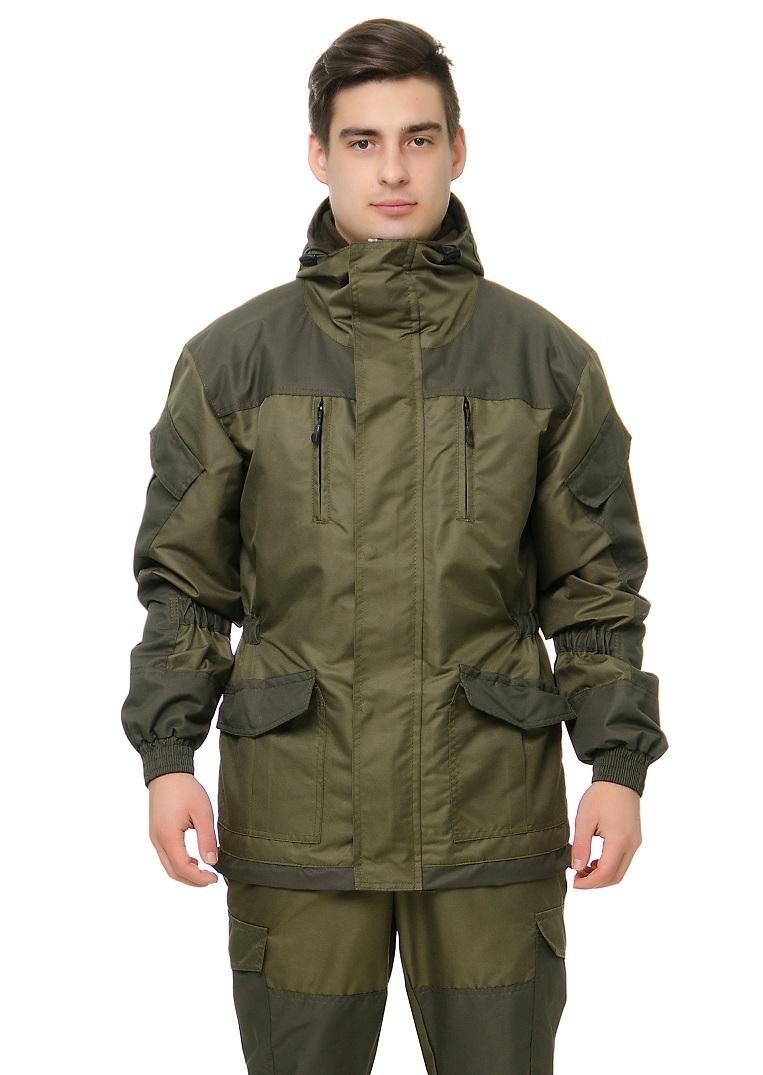 КУРТКА свободного кроя с  центральной бортовой застежкой на молнию и ветрозащитной планкой. На куртке имеется Полочки с кокетками, с верхними прорезными карманами в рамке с молниями, два накладных кармана, два накладных кармана на рукавах с застежкой на липучку, а так же внутренний карман. Кокетка и область локтя усиливаются фигурными накладками, низ рукавов на резинке. Капюшон двойной, имеет утягивающую кулису для регулировки по объему. Низ куртки регулируется с помощью кулисы, талия стягивается резинкой по бокам.