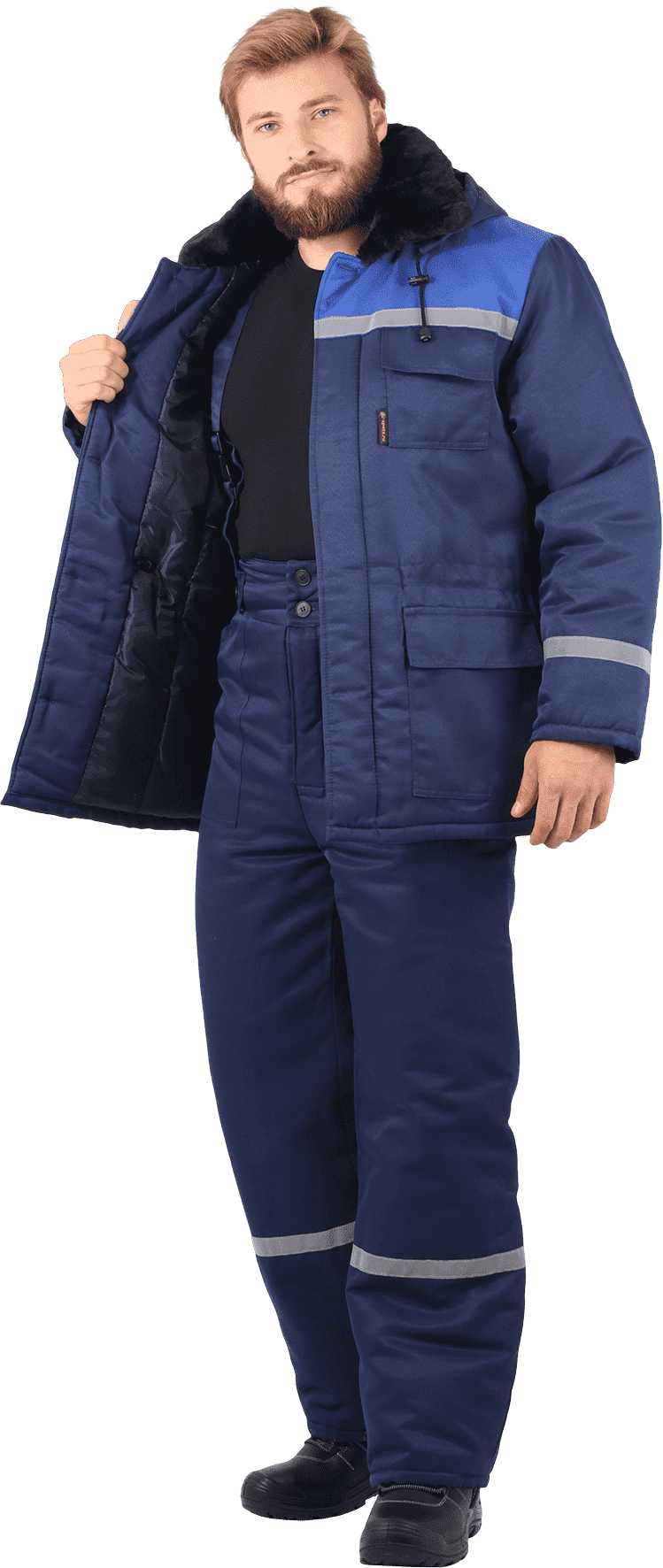Костюм зимний сине-черный со световозвращающими полосами